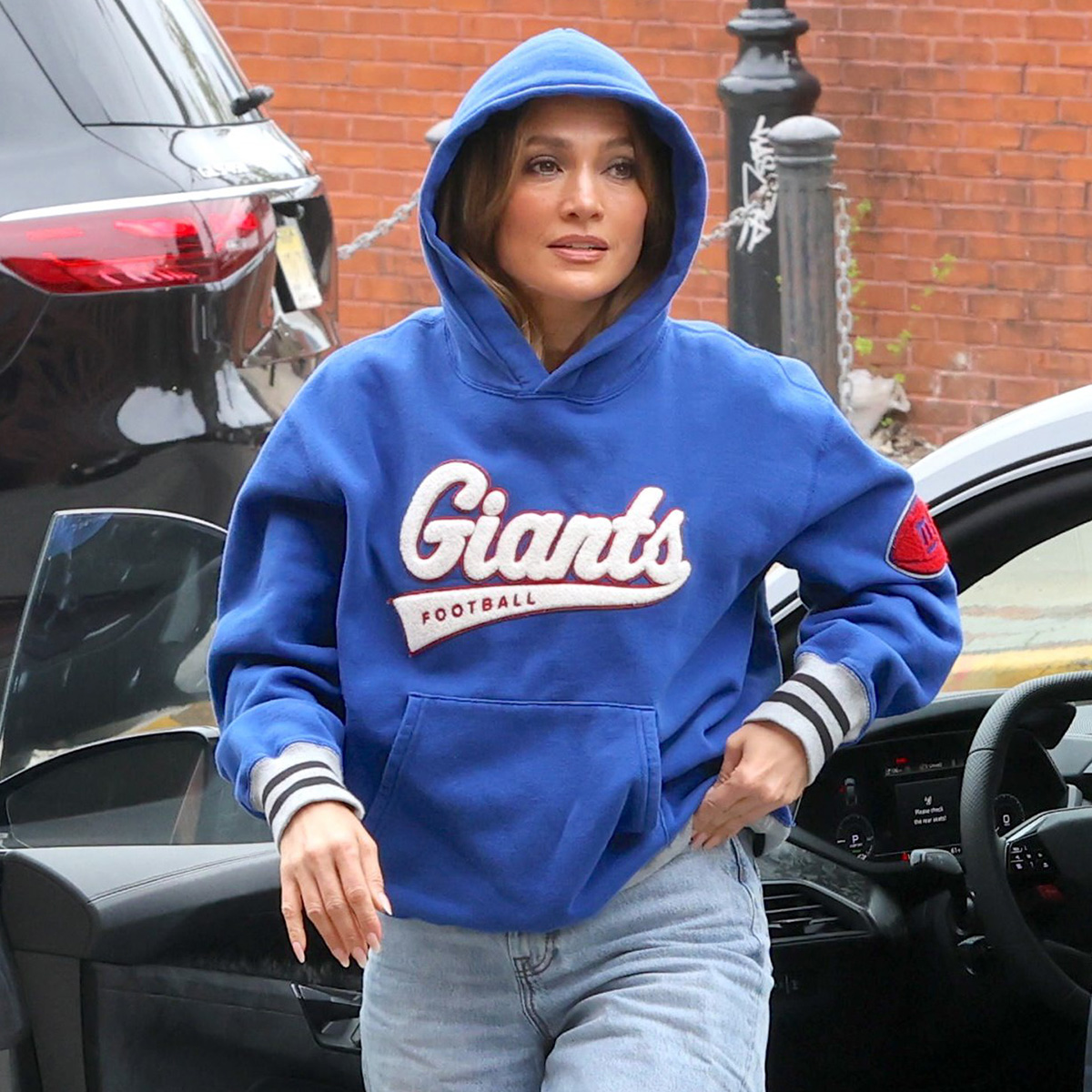 This week, J.Lo was spotted in Hoboken, New Jersey, while filming scenes for Office Romance dressed in a blue graphic sweatshirt paired with light-wash, wide-leg jeans. This relaxed denim silhouette has been a longtime staple in her wardrobe, season after season. She even opts for them over classic straight-leg white jeans in the warmer months, proving just how versatile and timeless they are.