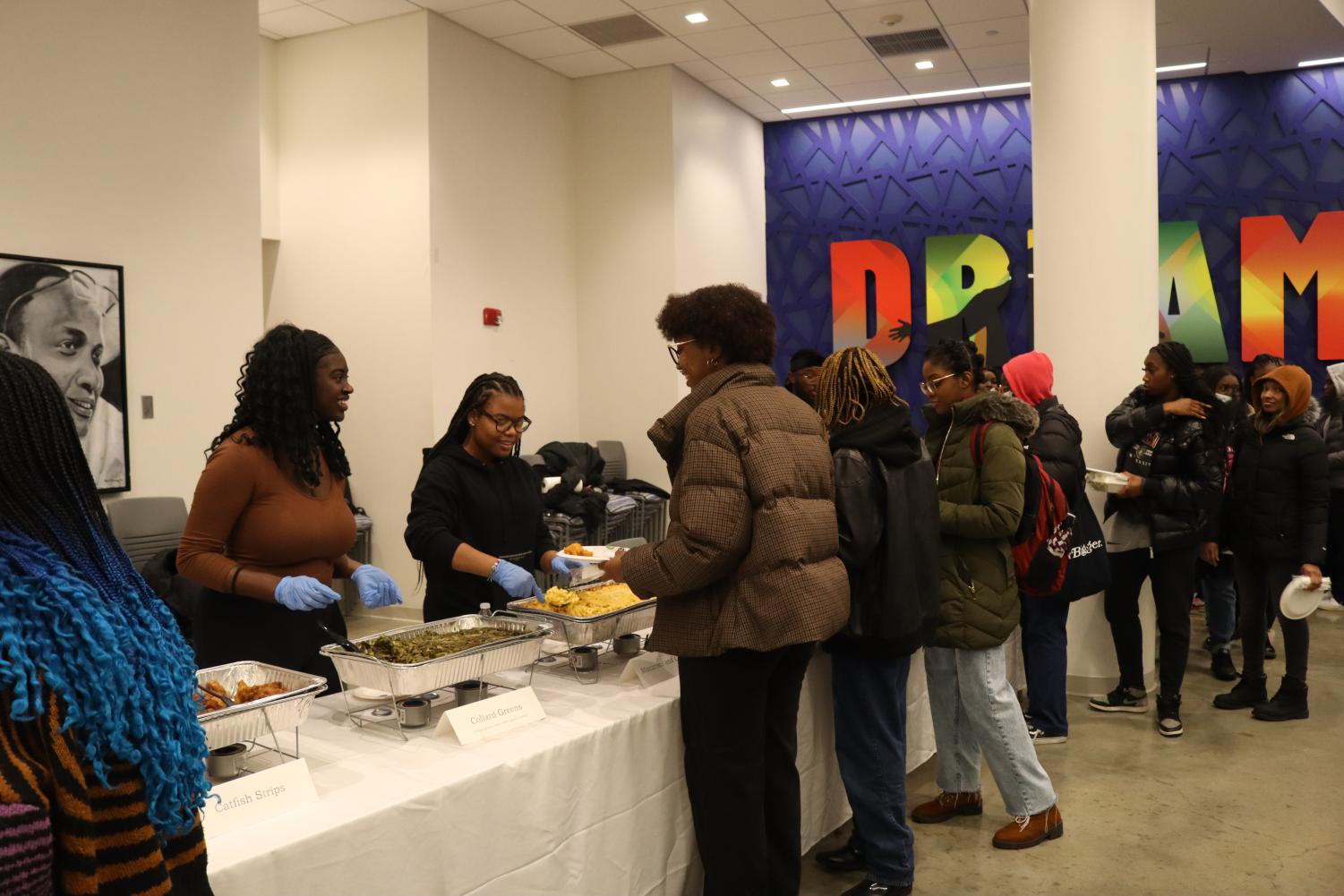Volunteers help serve students food from across the African diaspora. Many enslaved Africans and their descendants used food to remain connected to their roots.