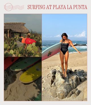 Set in a sheltered cove west of the center that’s reached by a stairway of 157 steps, Playa Carrizalillo is where you’ll want to head to actually swim and get in the water as a beginner surfer, as it’s more protected from the harsh currents you’ll find at the main beaches. It’s also incredibly photogenic and a place that encapsulates the magic of the area. “Puerto is on a different time,” Anderson continues. “It’s slow, quiet, and peaceful. That’s what I love about it. Everyone is able to take their time and be in the present moment. That’s what makes it different.”
