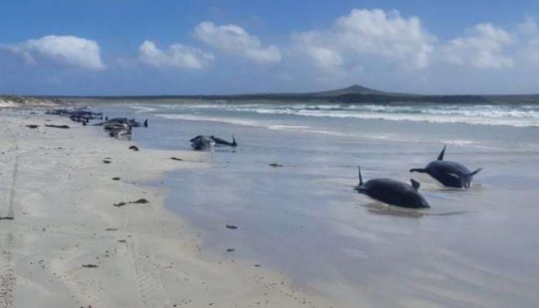 About 100 pilot whales and bottlenose dolphins have died in a mass stranding on the remote Chatham Islands, about 800km (497 miles) off New Zealand’s east coast, officials said. Most of them were stranded during the weekend but rescue efforts have been hampered by the island’s remote location. New Zealand’s Department of Conservation on Wednesday said a total of 97 pilot whales and three dolphins died in the stranding, adding they were notified of the incident on Sunday. “Only 26 of the whales were still alive at this point, the majority of them appearing very weak, and were euthanised due to the rough sea conditions and almost certainty of there being great white sharks in the water which are brought in by a stranding like this,” said DOC Biodiversity Ranger Jemma Welch. Mass strandings a...