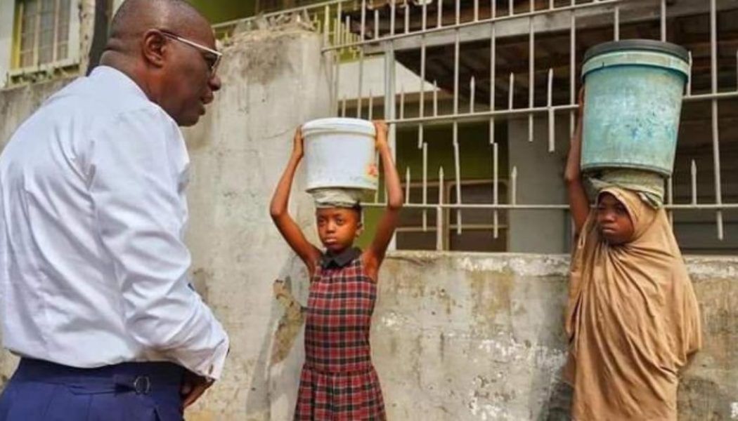 Facebook WhatsApp Reddit Twitter Shares Governor Babajide Sanwo-Olu of Lagos state gave hope to two girls he met on his way to an official duty. After seeing these girls carrying buckets on their heads instead of being in school, the Governor stopped his convoy to ask why they weren’t in school. .u2d1ba2262c4f1b34b8ba2766f595ce0f { padding:0px; margin: 0; padding-top:1em!important; padding-bottom:1em!important; width:100%; display: block; font-weight:bold; background-color:inherit; border:0!important; border-left:4px solid #16A085!important; box-shadow: 0 1px 2px rgba(0, 0, 0, 0.17); -moz-box-shadow: 0 1px 2px rgba(0, 0, 0, 0.17); -o-box-shadow: 0 1px 2px rgba(0, 0, 0, 0.17); -webkit-box-shadow: 0 1px 2px rgba(0, 0, 0, 0.17); text-decoration:none; } .u2d1ba2262c4f1b34b8ba2766f595ce0f...
