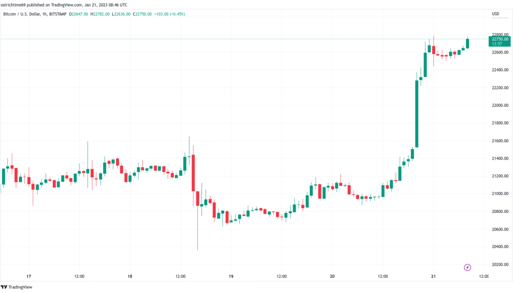 Bitcoin (BTC) took a swing at $23,000 into Jan. 21 as Asia buyers drove fresh market strength. BTC/USD 1-hour candle chart (Bitstamp). Source: TradingView Bid liquidity causes suspicion Data from Cointelegraph Markets Pro and TradingView showed BTC/USD battling bears to reach $22,790 on Bitstamp overnight — its highest since August. With new multi-month peaks coming in quick succession despite fears of a major correction, Bitcoin continued to surprise as traders cleared the way for more upside. As noted by intraday trader Skew, Asia was leading the way into the weekend, with sellside pressure from market makers being absorbed on exchanges. “Another rally driven by asia bid. TWAP buyers absorbing the sell pressure from MMs. Large spot bid lifting offers & ask wall pulled prior to anothe...