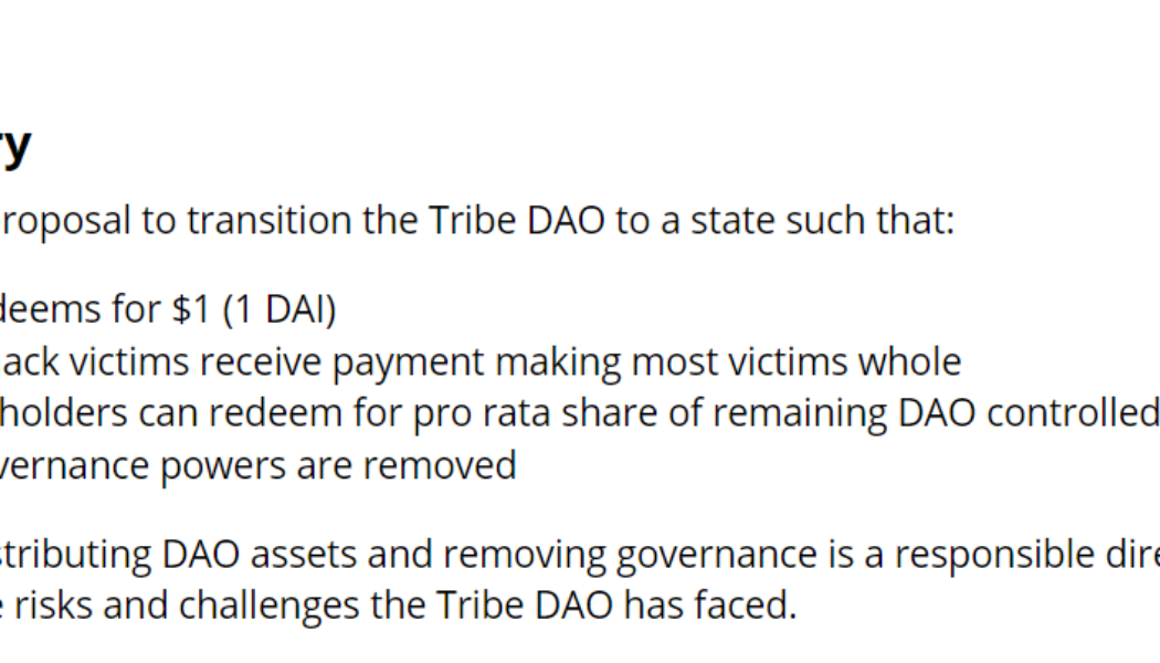 An attack in April 2022, which drained off nearly $80 million from various Rari Fuse pools, required the decentralized finance (DeFi) platform Fei Protocol to come up with a solution that minimizes damage to the ecosystem. Fei Labs’ latest proposal, which partly recommends revoking participation from Tribe DAO, received mixed sentiments from the community. Fei Protocol founder Joey Santoro announced the latest proposal, TIP-121: Proposal for the future of the Tribe DAO, revealing the company’s intent to reimburse Fuze victims. It also details plans for asset redemption and the distribution of protocol-controlled value (PCV) assets that manage the liquidity and yield. I hope this proposal resonates with the community and thank you for your support.https://t.co/RjpS9j4x2H — Joey ’s ERC-4626 ...
