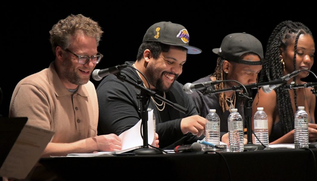 After taking on Seinfeld the day before, Seth Rogen and his Table Reads series at Netflix Is a Joke Festival went in a decidedly different direction on Monday night by reading through Ice Cube and DJ Pooh’s 1995 stoner classic Friday. One of the highlights of the performance, naturally, was the recreation of the scene in which Deebo launches Red into the air after the latter asks for his bike back, leading Smokey to exclaim, “You got knocked the fuck out!” With Rogen giving stage directions, O’Shea Jackson Jr. stood in for his father Ice Cube’s character Craig Jones. GaTa filled in as Chris Tucker’s Smokey with Brian Simpson as DJ Pooh’s Red and Lil Rel Howery as Tiny “Zeus” Lister Jr.’s Deebo. After promising to get Craig high because “It’s Friday, you ain’t got no job, and...