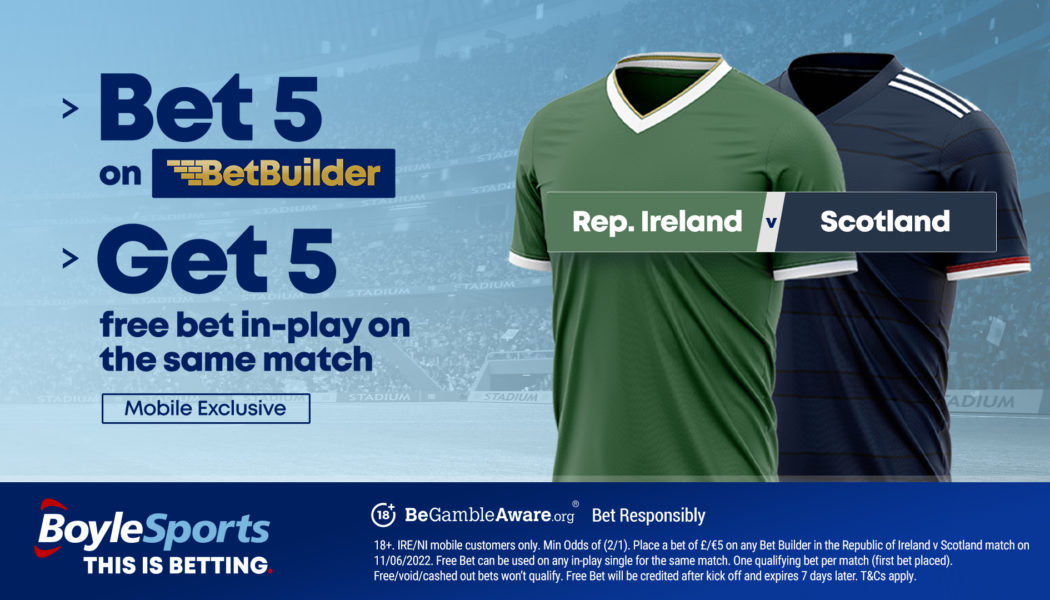 Stephen Kenny’s struggling Ireland welcome Scotland to the Aviva Stadium this weekend in another Nations League fixture, looking to mark their first victory of the campaign. Top 5 New Football Betting Sites Sites Highlights Register 4. Bet £10 Get £20 In Free Bets Ireland vs Scotland Bet Builder Free Bet Bet365 are offering new customers £50 worth of free bets to use across their sportsbook. If you were to place the entirety of the bonus on our selections, customers would receive returns of £2,000! Click here to sign up to bet365. Place a bet of £10 or more at odds of 1/5 or more. You’ll then receive £50 worth of free bets. Bet £10 Get £50 In Bet Credits Claim Offer Min deposit requirement. Free Bets are paid as Bet Credits and are available for use upon settlement of qualifying bets. Min ...
