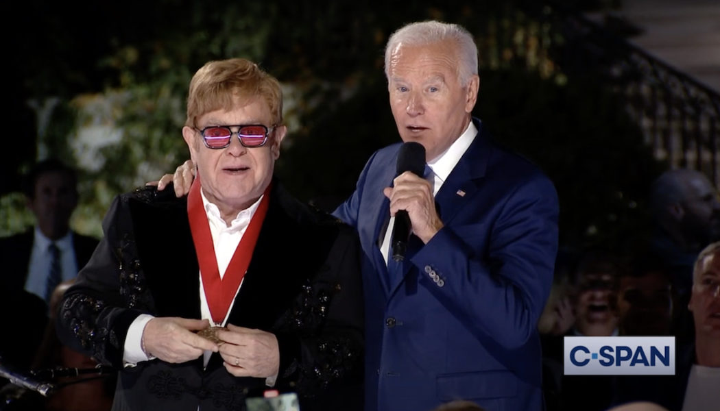 President Biden surprised Elton John by bestowing him with the National Humanities Medal during a concert at the White House on Friday. The South Lawn performance was part of A&E Networks and The History Channel’s “A Night When Hope and History Rhyme,” an event celebrating “everyday heroes” like nurses, teachers, and activists. John performed hits like “Tiny Dancer” and “Rocket Man” at the event, but the artist, who created the Elton John AIDS Foundation in 1991, seemed genuinely shocked when President Biden honored his activism instead of just enjoying his music. “Tonight is my great honor, and I mean this sincerely, to present the National Humanities Medal to Sir Elton John,” Biden said, as John, mouth agape and wiping tears from his eyes, clutched his piano. A White House officer ex...