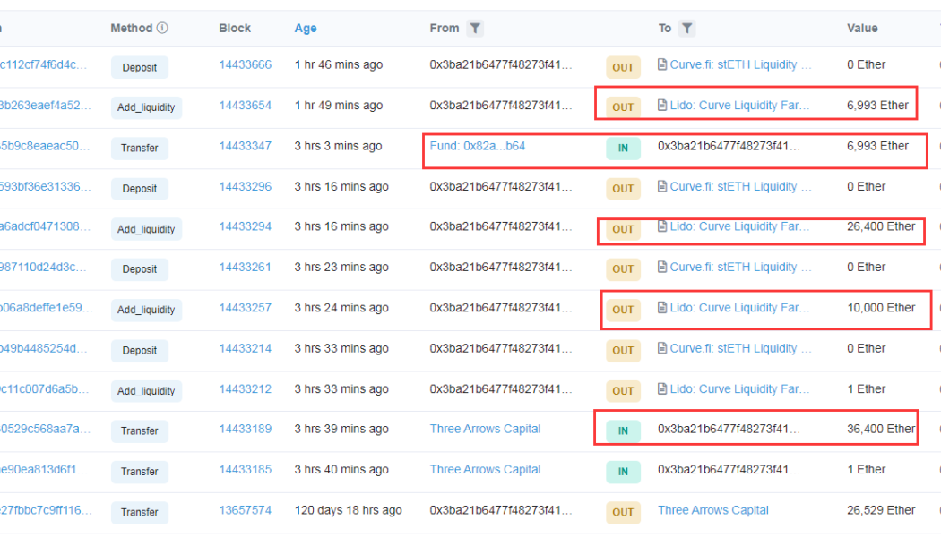 Ethereum’s native token Ether (ETH) rose above $3,000 on March 22 as fresh data suggests Three Arrows Capital staked at least $110 million worth of ETH into Lido’s liquidity pools. The Singapore-based hedge fund manager provided liquidity worth 36,401 ETH to Lido’s “Curve stETH pool” using a third-party Ether wallet, data from Etherscan shows. As a result, it became eligible to receive at least 36,401 stacked Ether (stETH) tokens from Lido: to ensure low slippage when un-staking those tokens for real ETH plus staking reward. Third-party Ethereum wallet that received ETH from Three Arrow Capital. Source: Etherscan.io Almost an hour later, another Ether address, marked with the word “fund,” sent 6,993 ETH (worth $21.12 million) to the ...