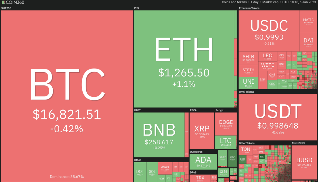 The United States December nonfarm payrolls report showed a growth of 223,000 jobs, above the market’s expectation of an increase of 200,000 jobs. While this shows that the economy remains strong, market observers shifted their focus to the slower wage growth of 0.3% for the month, below economists’ expectation of 0.4%. In addition, the euro zone’s headline inflation dropped from 10.1% in November to 9.2% in December. Both economic data boosted hopes that the central bank’s aggressive rate tightening may slow down. This triggered a rally in the U.S. and European stock markets. Daily cryptocurrency market performance. Source: Coin360 However, the reaction in the cryptocurrency space remains muted, with Bitcoin (BTC) continuing to trade inside a narrow range. The crypto investors...