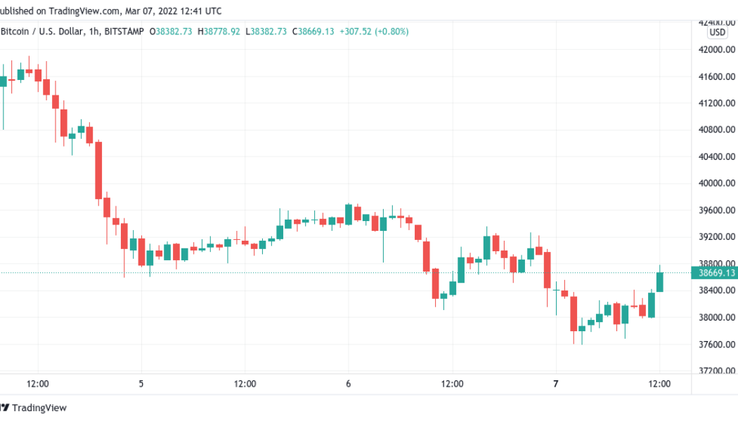 Bitcoin (BTC) erased then recovered its daily gains later on March 8 as United States President Joe Biden announced a complete ban on Russian oil imports. BTC/USD 1-hour candle chart (Bitstamp). Source: TradingView BTC comes full circle, while gold steals the show Data from Cointelegraph Markets Pro and TradingView followed BTC/USD as it targeted $38,000 an hour after Tuesday’s Wall Street open. Having hit $39,240, the pair swiftly changed trajectory as Biden confirmed the plans, which added to oil’s already strong gains and further pressured stocks and risk assets. “Today, I’m announcing that the United States is targeting the main artery of Russia’s economy,” he said at a press conference. “We’re banning all imports of Russian oil and gas and energy. That means that Russia...