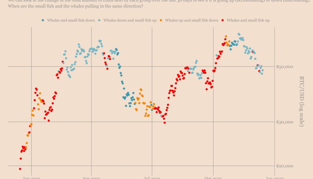 Bitcoin (BTC) staged an impressive recovery after dropping to its three-month low of $42,333 on Dec. 4, rising to as high as $51,000 since. The BTC price retracement primarily surfaced due to increased buying activity among addresses that hold less than 1 BTC. In contrast, the Bitcoin wallets with balances between 1,000 BTC and 10,000 BTC did little in supporting the upside move, data collected by Ecoinometrics showed. “Bitcoin is still stuck in a situation where small addresses are willing to stack sats [the smallest unit account of Bitcoin], while the whale addresses aren’t really accumulating,” the crypto-focused newsletter noted after assessing the change in Bitcoin amounts across small and rich wallet groups, as shown in the graph below. Bitcoin on-chain ...