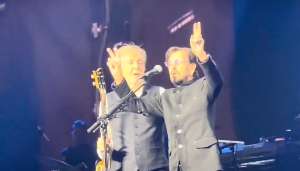 The former Beatles share the stage for a two-song performance in London. Paul McCartney and Ringo Starr Reunite to Perform “Sgt. Pepper’s” and “Helter Skelter” Scoop Harrison