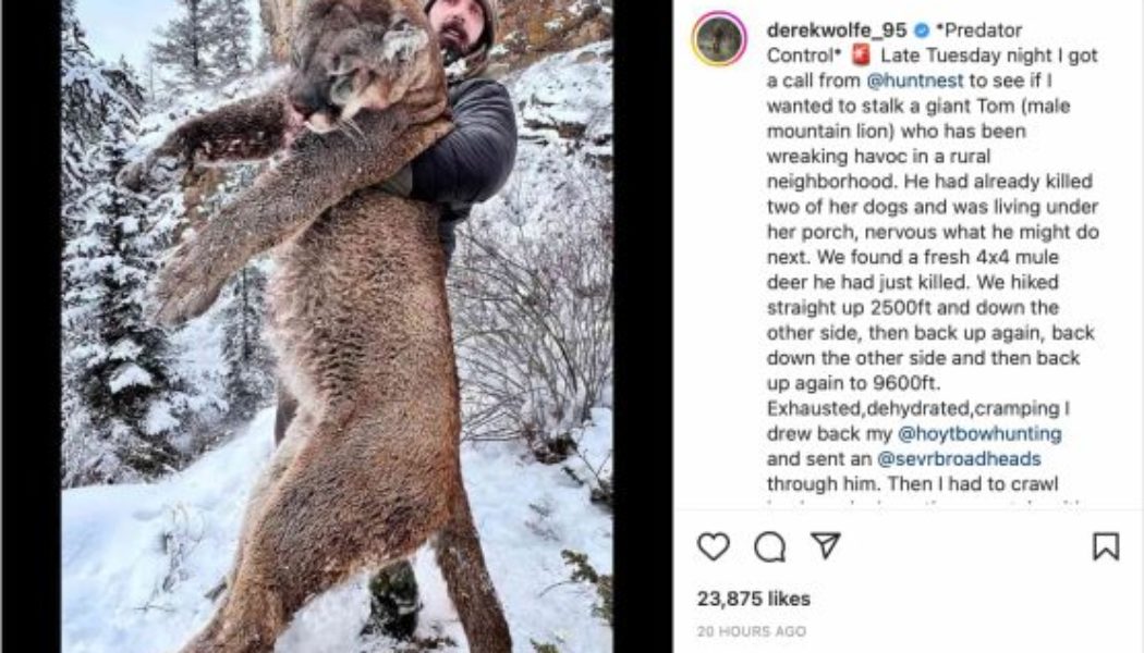 Ex-NFL star Derek Wolfe has been slammed by shocked fans across social media after being pictured hoisting up a huge mountain lion that he personally hunted and killed. The former Denver Broncos , for whom he won the 2015 Super Bowl, and latterly Baltimore Ravens defensive end has been heavily criticised by horrified fans after it emerged the 32-year-old had killed a mountain lion. The creature had, according to Wolfe, been ‘wreaking havoc on a rural neighbourhood’ after he revealed a mule deer and two dogs were found dead on an Instagram post. It is no secret the 2022 retiree is an avid fisherman hunter and spends much of his time tracking down animals, but after hearing a woman’s plea for help after her two dogs went missing, he decided to make an apparent 9,600 foot hike up the mountain...