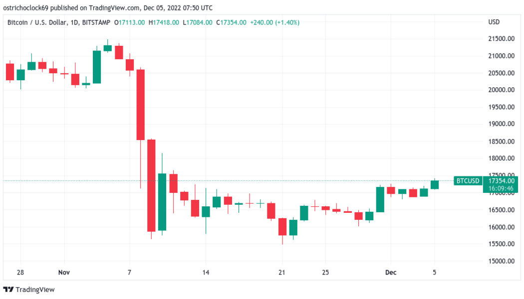 Bitcoin (BTC) starts its first full week of December at three-week highs as bulls and bears battle on. After a weekly close just above $17,000, BTC/USD seems determined to make the most of relief on stocks and a weakening U.S. dollar. As the United States gears up to release November inflation data, the dollar looks to be a key item to watch as BTC price action teases a recovery from the pits of the FTX meltdown. All may not be as straightforward as it seems — miners are facing serious hardship, data shows, and opinions on stocks’ own ability to continue higher are far from unanimous. As the end of the year approaches, will Bitcoin see a “Santa rally” or face a new year nursing fresh losses? Cointelegraph presents five areas worth watching in the coming days when it comes to BTC/USD perfor...