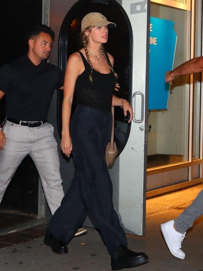 Matching her leather handbag to her baseball cap, Swift co-ordinated her accessories, elevating the look and feel of the otherwise casual outfit.