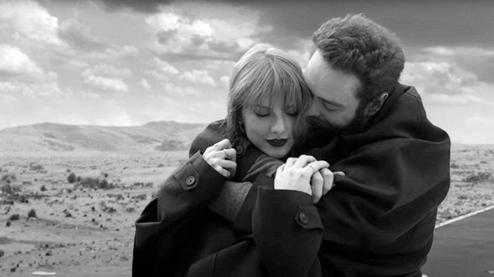 Taylor Swift and Post Malone appear in this screengrab from Swift’s music video, “Fortnight.”