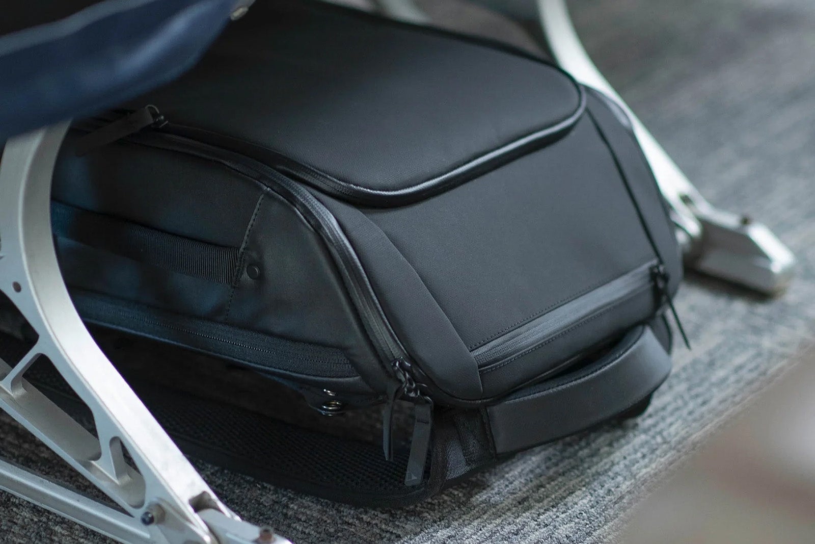 During the middle of a flight, my laptop was running out of charge, so I opened the overhead bin and pulled down my Away backpack, which had a charger inside the main pocket.