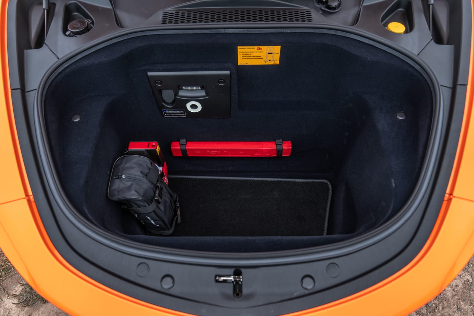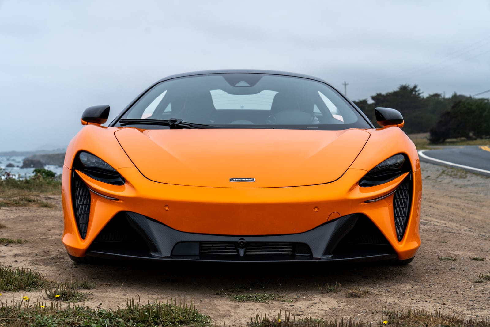 Ignoring the loud AF orange metallic paint job, we couldn’t help but notice the Artura felt more sensible with its looks. While it may not scream “everyday” as a package, the sharpish angles, proportions and ride height felt constrained in the end. Examples: No rear wing, no huge front intake dam, front radiators stashed towards the fenders, flying buttress that you’d probably not even notice. Even the rear half could have easily caused more drama with an exposed mid-engine but instead was covered up by perforated plastic and paint.