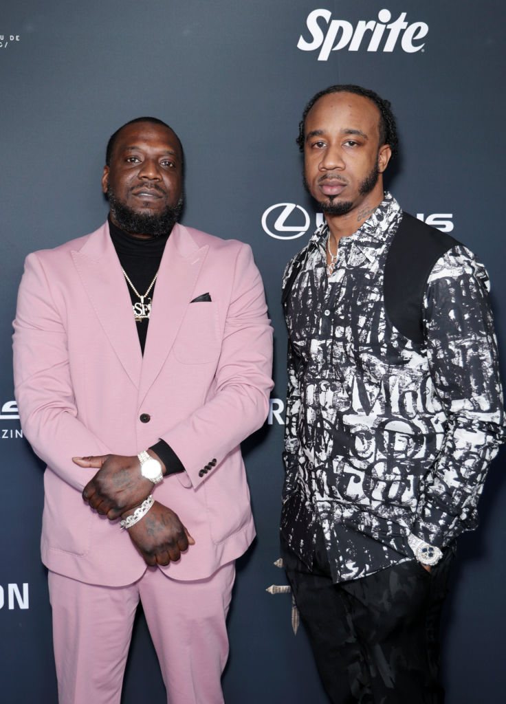 BEL AIR, CALIFORNIA – FEBRUARY 04: (L-R) Guest and Benny the Butcher attend 2023 Roc Nation The Brunch at Private Residence on February 04, 2023 in Bel Air, California. (Photo by Momodu Mansaray/Getty Images for Roc Nation) vertical,photography,arts culture and entertainment,attending,usa,music,california,guest,bel air,brunch,butcher,residential building