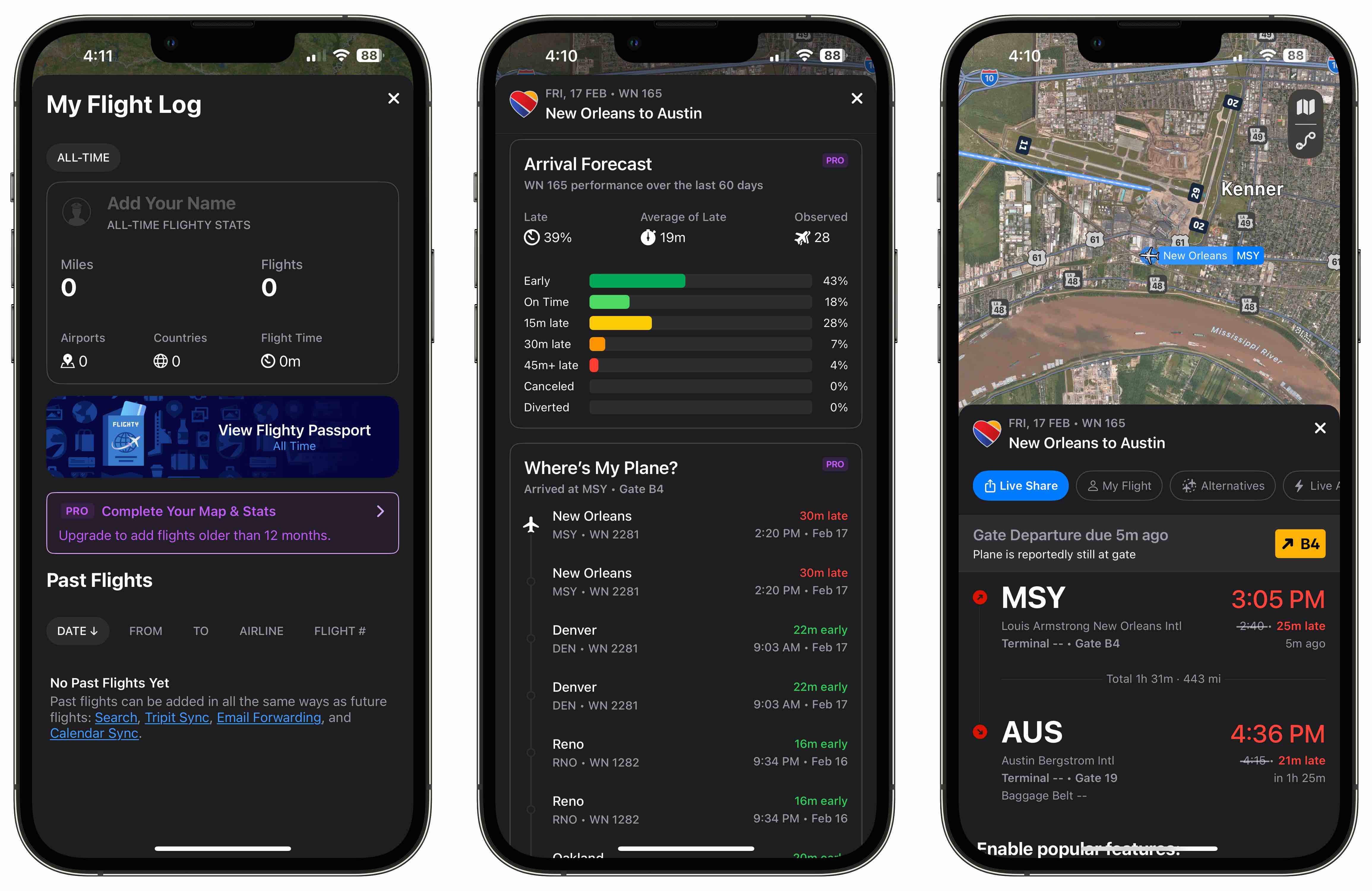 Flighty is the new kid on the block. I learned about it when Live activities were introduced in iOS 16, and I began to see a very cool flight tracker on users’ lock screens. Flighty is a bit different from the first two apps I mentioned. Flighty is primarily used to keep tabs on your upcoming or current flight. But it gives so much more information than you ever thought possible.