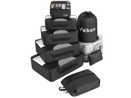 Looking for a way to stay more organized while you travel? Look to the cube. This 8-piece set, an Amazon’s Choice, features compressible cubes of various sizes. But wait, there’s more! It also comes with a shoe bag, a cosmetics case, an accessory bag, an underwear bag and a drawstring bag that you can use for dirty clothes.