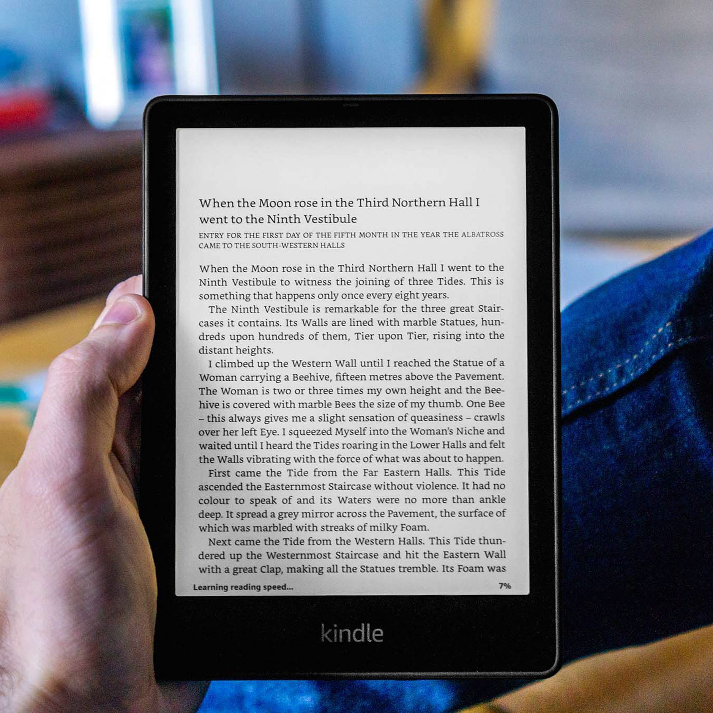Amazon’s latest Kindle Paperwhite has a 6.8-inch E Ink display with adjustable color temperature for nighttime reading. It also boasts a faster processor, additional battery life, IPX8 waterproofing, and — finally — a USB-C port. Read our review.