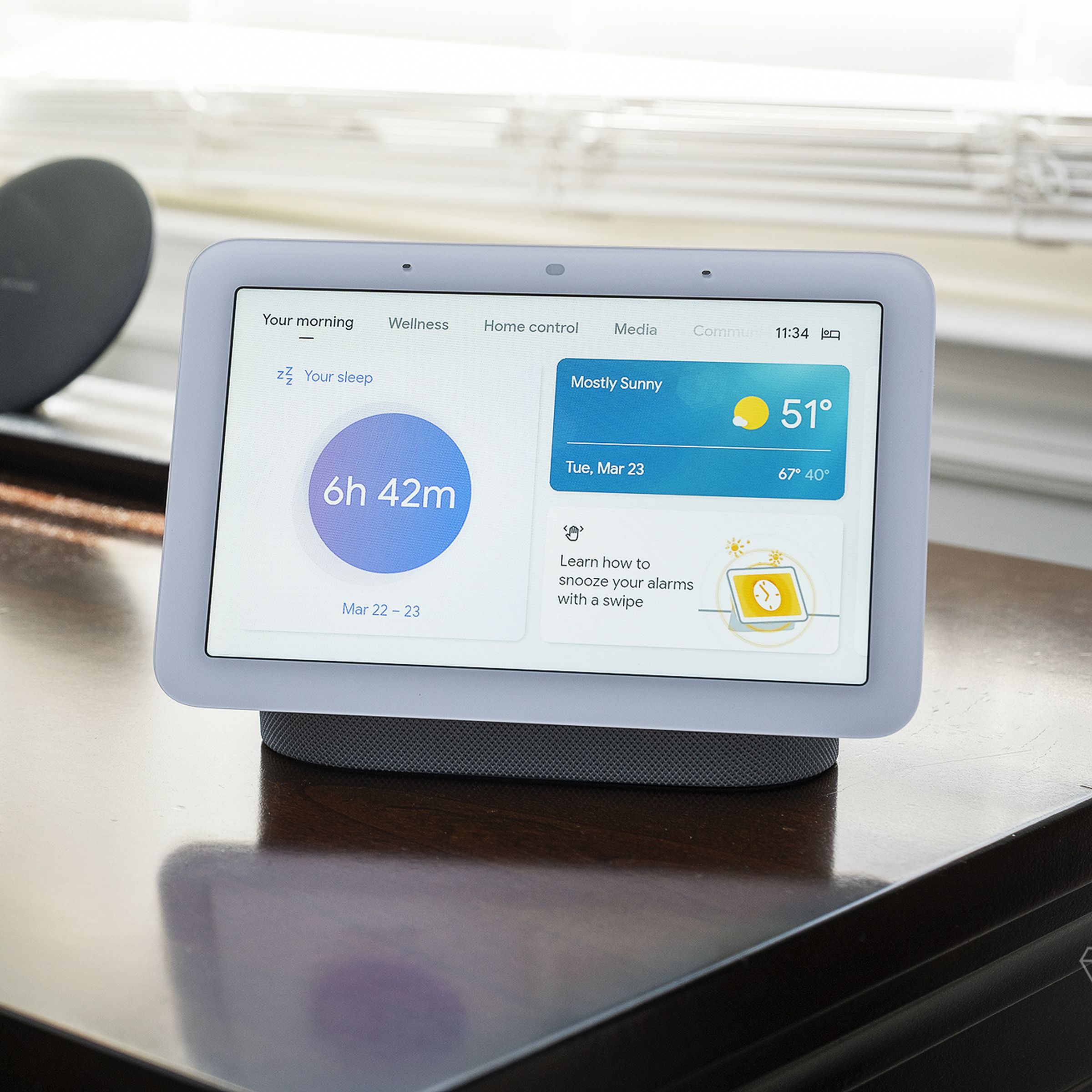 The second-gen Nest Hub is Google’s smallest smart display, with a seven-inch touchscreen that can automatically adjust itself to the lighting in your room. What’s new in the latest version is its ability to automatically track your sleep patterns with its Soli radar chip. Read our review.