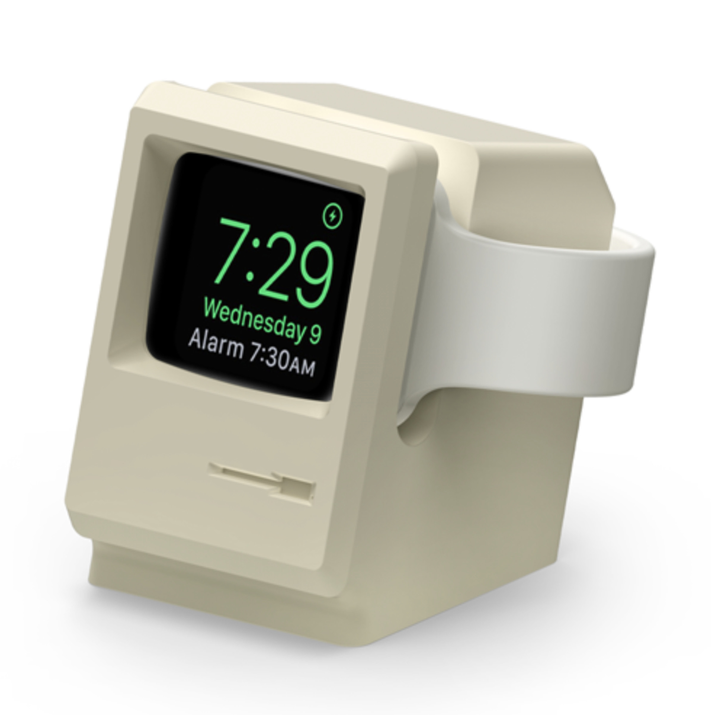 Elago’s charming Apple Watch stands are made of silicone and styled after vintage tech. Mount your Apple Watch charger in it, and it will resemble an old Macintosh Plus computer while charging.