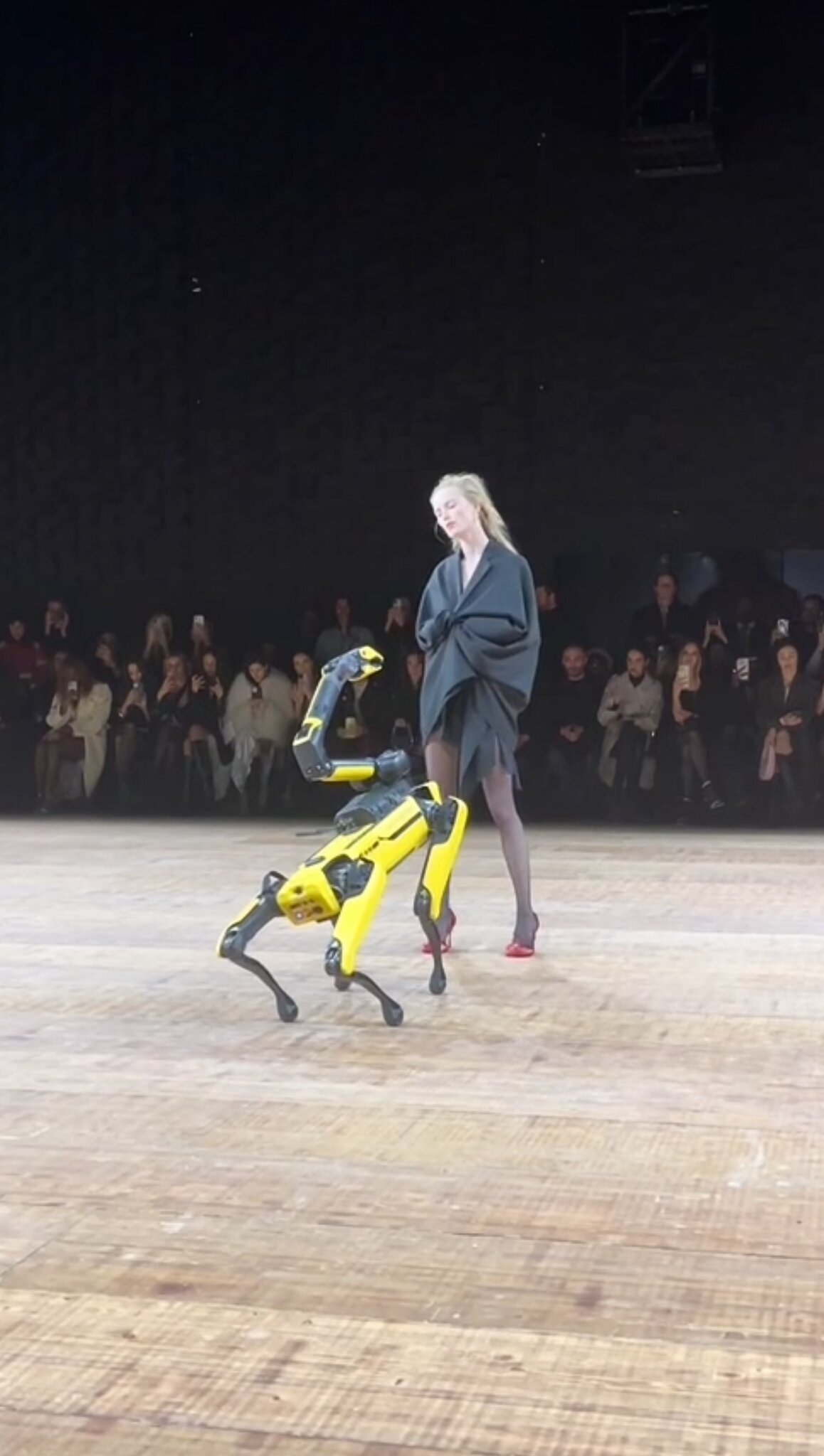 For the second season in a row, the Coperni designers Sébastien Meyer and Arnaud Vaillant might have been responsible for the most viral moment of fashion week. The duo — who last fall had a machine spray paint a dress onto the nearly naked body of the model Bella Hadid — at their latest show had a pack of robot dogs prowl the runway like wolves as models made their way down it. One of the robots went so far as to caress a model’s face before tugging a jacket from her shoulders with its arm. Cool or creepy? Neither we, nor the internet, could decide. — Elizabeth Paton