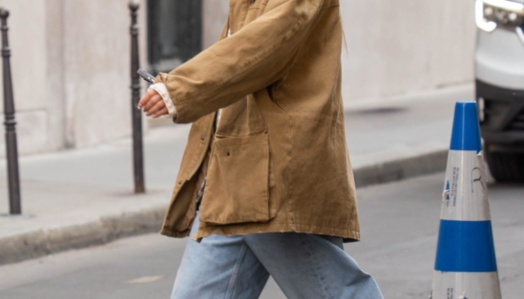 Stepping out in Paris, Watson completed her jeans and barn jacket look with a light brown pair of Birkenstock Boston clogs.