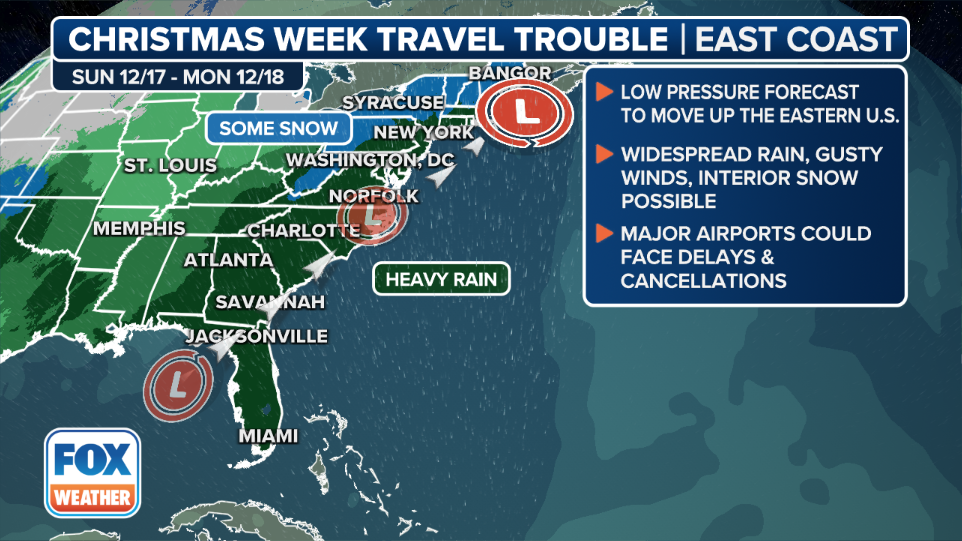 A storm system developing in the Gulf of Mexico this week will have far-reaching impacts across the eastern U.S. After dumping heavy rain and raising the risk of flash flooding in Florida, the storm moves up the East Coast. That will lead to messy weather that could cause some headaches for early holiday travelers.