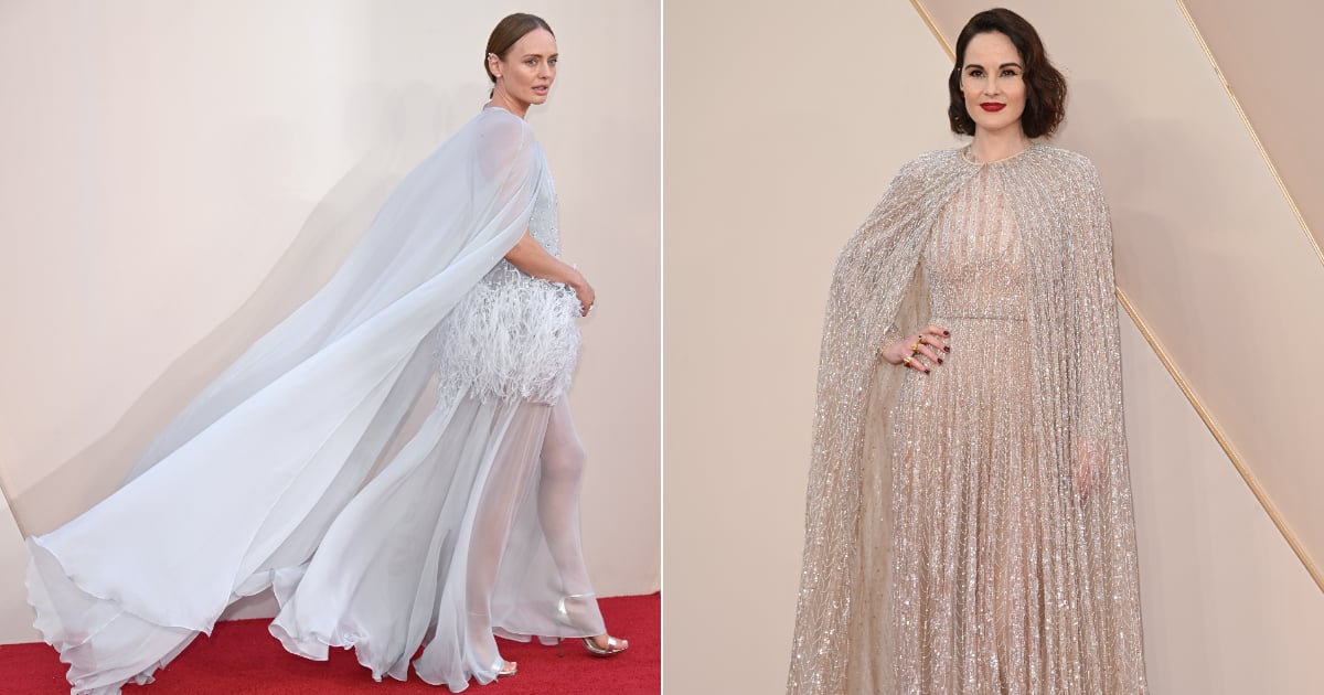 It was easy to see how the ladies of “Downton Abbey” took inspiration from 1920s fashion for their red carpet outfits. The style of the 1920s is often defined by the sparkling, sheer gowns worn by flappers and partygoers in “The Great Gatsby”. For the “Downton Abbey: A New Era” world premiere, stars wore sparkling and sheer gowns in colours of champagne, gold, silver, gray, and black velvet. Expect lots of diamanté details, feathers, silk and satin fabrics, sumptuous black velvet, and oversize bow details. In addition to Haddock and Dockery, we also loved the multitextured Azzi & Osta gown worn by Elizabeth McGovern (who plays Cora Crawley).