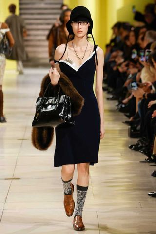 As for how this trend will actually percolate come fall, you can expect Miu Miu to somehow make the cone bra mainstream. The garment, which originated in the 1950s, was considered controversial for its irregular appearance when Madonna brought it back in the ’90s. TBH, Miu Miu is the only brand I can think of with the influence to make everyone start wearing them en masse.