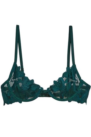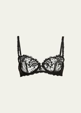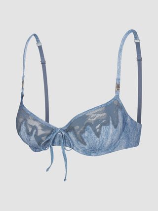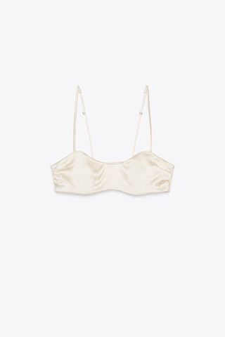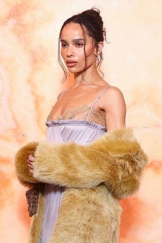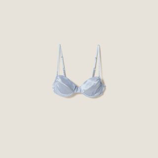 But then, at Paris Fashion Week, I couldn’t help but notice exposed bras were everywhere. At Miu Miu, models wore cone bras, their peaks jutting out from long-sleeve shirts and tank tops for a more angular appearance. At Sarah Burton’s debut for Givenchy, exposed undergarments were proudly displayed beneath netted dresses. Valentino experimented with lace turtleneck bodysuits worn with stockings and satin bralettes layered on top. Vaquera took a more literal and absurdist approach with supersized bras turned into off-the-shoulder tunics. At the shows, guests like Zoë Kravitz wore dresses with lace details mimicking the appearance of a bra peeking out from a slip worn too low.