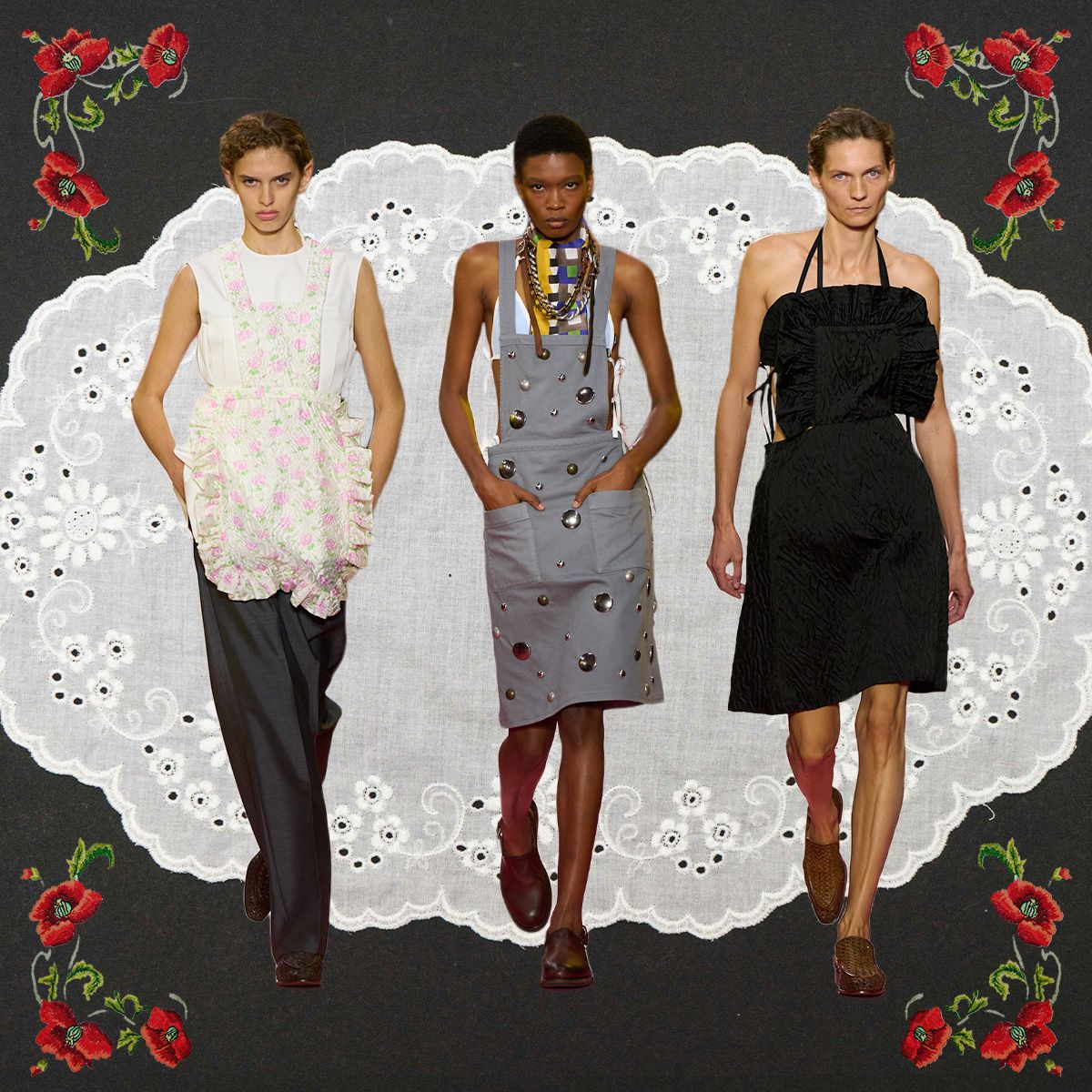 While the apron is often something only seen within the walls of a home or a workshop, Prada saw it as something that deserved to be platformed and considered beautiful. “The apron, as a universal symbol of work, is afforded a nobility and respect,” she wrote. “Cultural meanings of this garment can shift radically according to changes in materialization and form—from domiciliary to clinical to industrial, physical labor to caregiving, primary and tertiary industries and the domestic sphere. A single garment containing multitudes.” Now, it’ll likely have its next multitude as an It item that’s sure to be trending by 2026.