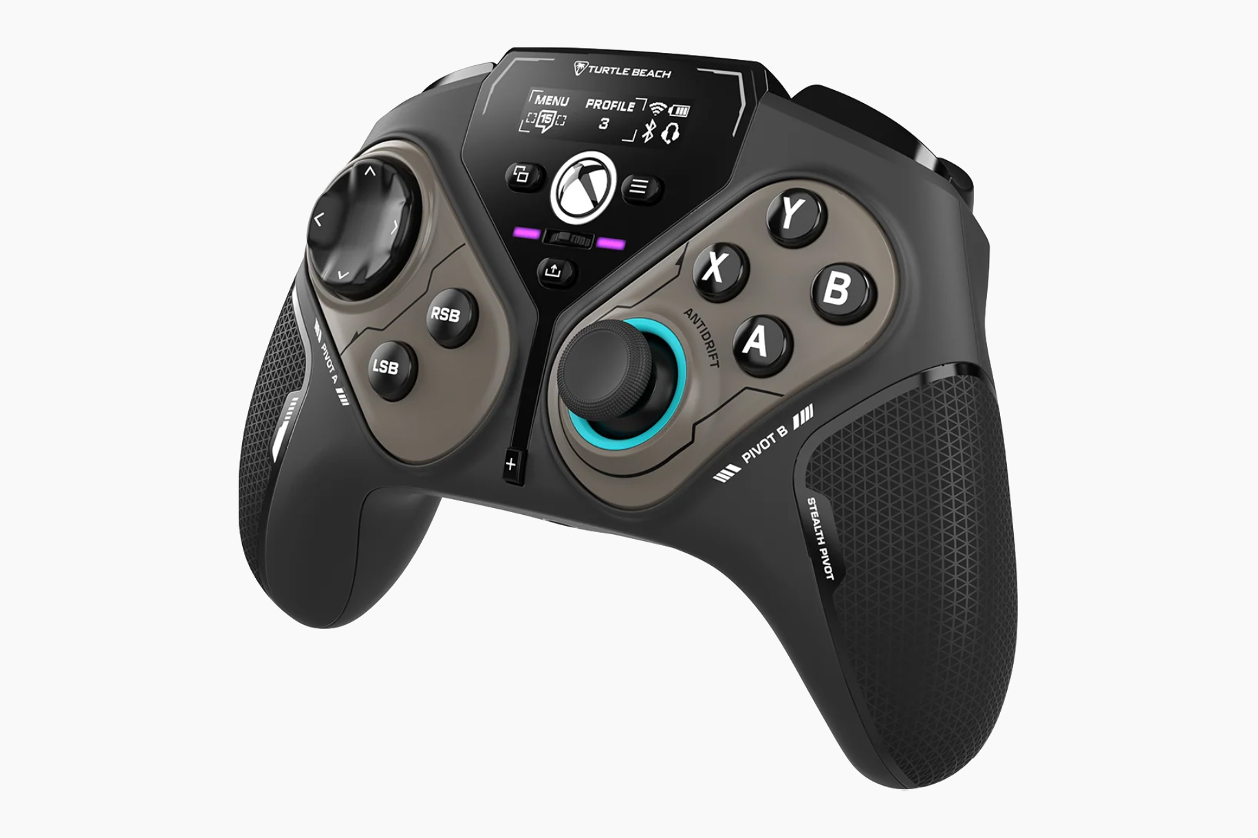 Although Turtle Beach’s wireless PC controller offers a slew of welcome components, including drift-free Hall effect joysticks and adjustable trigger stops, its defining feature is a pair of rotating modules that can “pivot” to reveal a customizable controller layout that’s better suited for retro titles and fighting games. You also get programmable back buttons, the ability to save up to five profiles, and a 3.5mm audio jack, not to mention compatibility with mobile devices over Bluetooth and Xbox consoles via a wired connection.