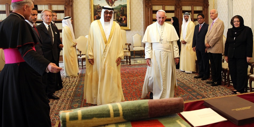 Back in 2016, Sheikh Mohammed bin Zayed, the Crown Prince of Abu Dhabi, visited Pope Francis at the Vatican to further strengthen religious and diplomatic ties. Amongst the gifts offered was an elaborate Pontifex Carpet artwork that was woven by Afghan women.