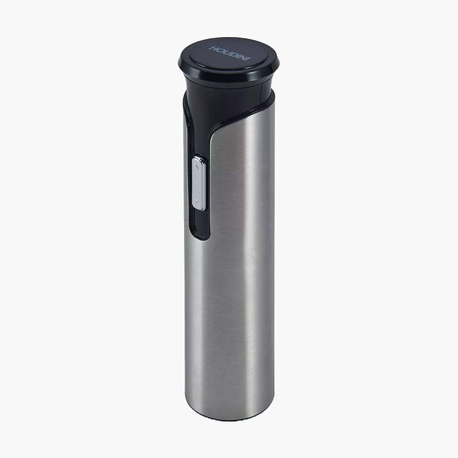 Uncorking a nice bottle of wine doesn’t have to be a painful experience. Houdini’s electric corkscrew can remove it with ease at the touch of a button. It’s made of a mix of stainless steel and black polycarbonate plastic, and it can uncork quite a few bottles (at least a dozen or more) before the battery needs changing.