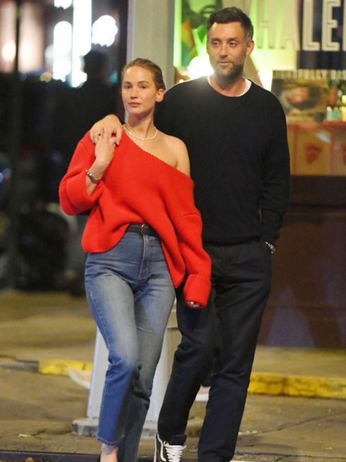 I don’t know about you, but since Jennifer Lawrence stepped out in the chicest red, off-the-shoulder jumper in mid-October, I’ve hardly stopped thinking about it. Up there with Katie Holmes’ Khaite knitted “bradigan” moment, J.Law’s laid-back jumper styling fuelled me with inspiration that’s lasted throughout the season. The only problem is that I haven’t been able to find the perfect jumper to replicate her look—that is, until now.