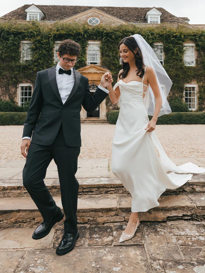 “I’m from the English countryside, three hours south of the Cotswolds in a county called Devon, but the feeling is very much the same. Cornwell Manor popped up and instantly [became our wedding venue]. We knew we wanted to get married outside surrounded by greenery, but the charming decor of the manor was also a cherry on top. We had a group of our closest friends and family stay there with us and it was so much fun.”—Newman