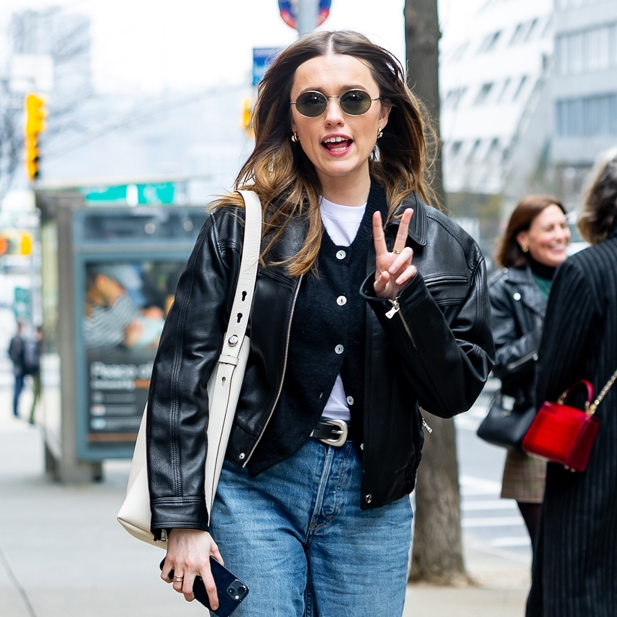 I don’t know about you but I’m even more inspired to add a new leather jacket to my wardrobe (and to wear it with socks and flats, of course). Keep scrolling to catch a glimpse of The White Lotus It girl’s style and shop similar leather jackets.