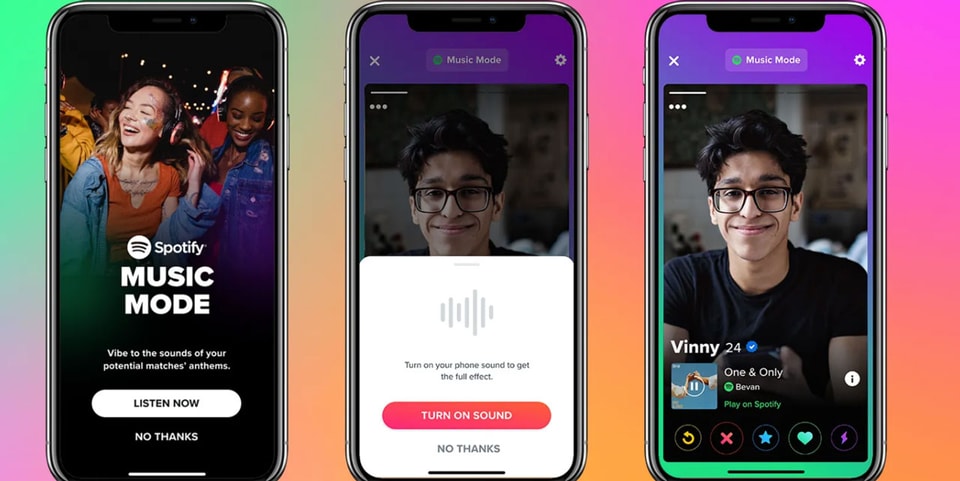 Tinder on Thursday introduced a new Music Mode, which allows users to select an “Anthem” to play directly on their profile, in partnership with Spotify.