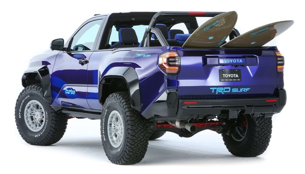 Inside, the concept’s waterproofed interior, soft flooring and a roof rack surfboard “Travel Quiver” solidify its beach-ready design. The 4Runner TRD Surf Concept will be on display at Toyota’s SEMA booth, with plans for broader production yet to be announced at the time of writing.