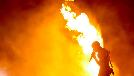 Things got even crazier during “Stargazing,” when dancers were literally hanging in the air doing wild acrobatics above the stage. Then, during his cult classic “Skyfall,” Travis had the whole crowd trippin’ with an optical illusion that made it look like he was walking sideways up a wall, real mind-bending visuals that felt straight out of “Days Before Rodeo.”