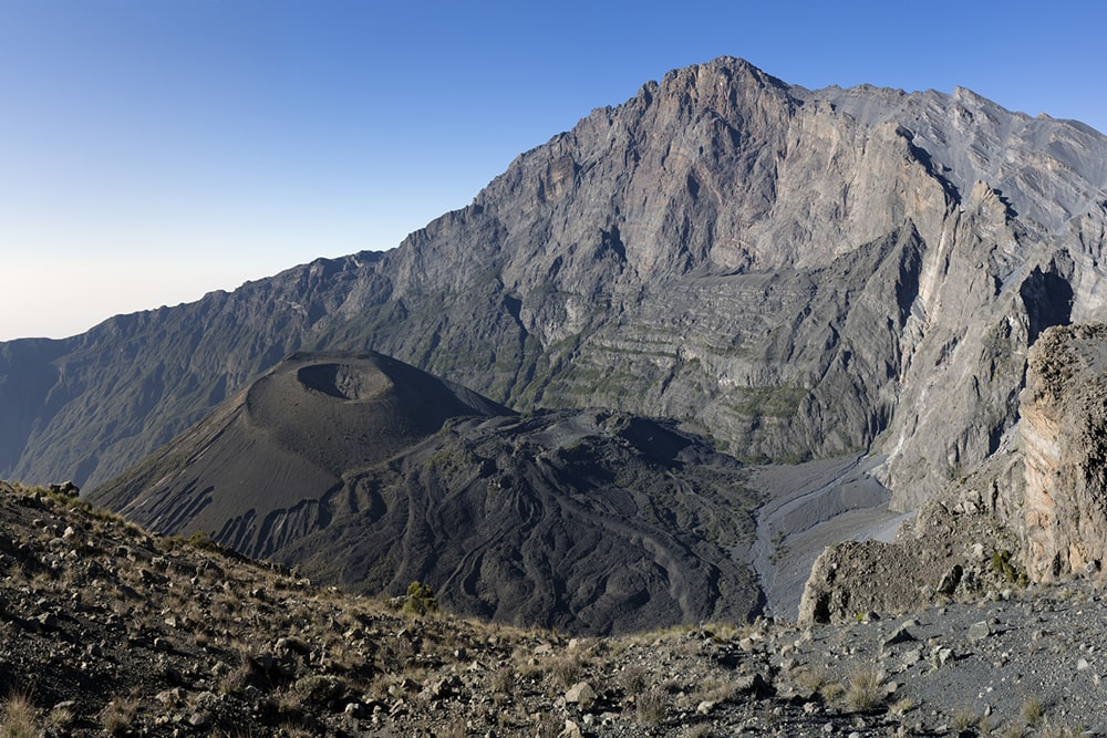 The cliffs of the inner wall below the summit are more than 1,500m high and among the tallest in Africa. Inside the crater, more recent volcanic eruptions have created a subsidiary peak called the Ash Cone.