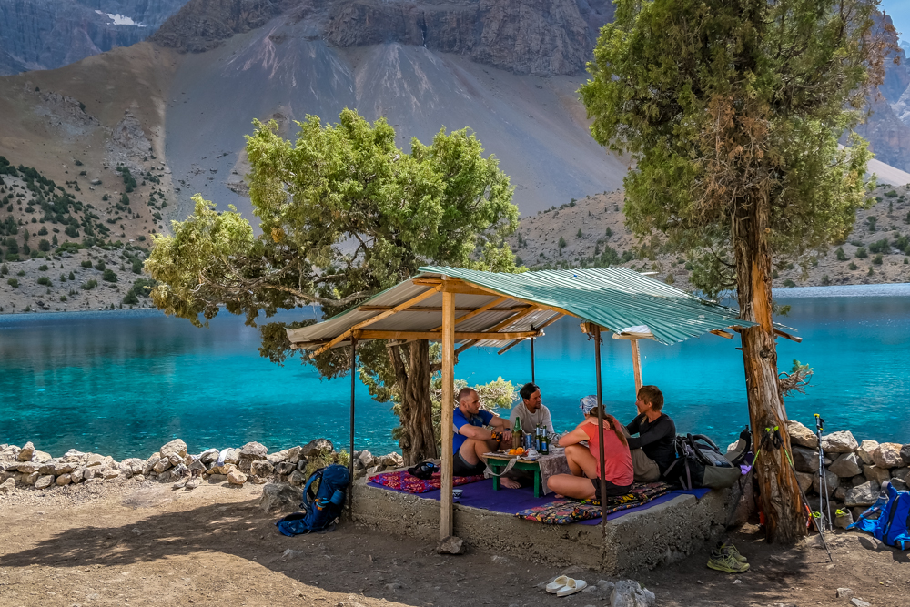 Here, the owner of the family-run establishment brought us a tray of green tea, dried fruit, nuts and sweets while we lazed on cushions and rugs of the lakeside tapchan (tea bed) and dipped our feet in the icy water after a long and dusty traipse across the Alaudin Pass.