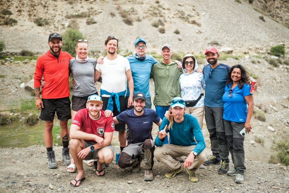 Fortunately, the weather cleared early the following morning so we had bright skies as we made our way up the snaking trail to Chimtarga Pass. We shared high fives and hugs as we looked down at the concertina folds of slopes we’d climbed. However, getting up the pass wasn’t necessarily the hardest part of the day. We still had a brutally steep and slow descent into the opposing valley.