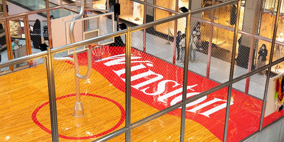 As part of Hong Kong Art Week 2023, Tyrrell Winston created Double Technical, a basketball court-themed installation in the city’s Landmark Mall. Now, Double Technical‘s floor has been covered and parts of it will be replaced due to a warning from local health authorities.
