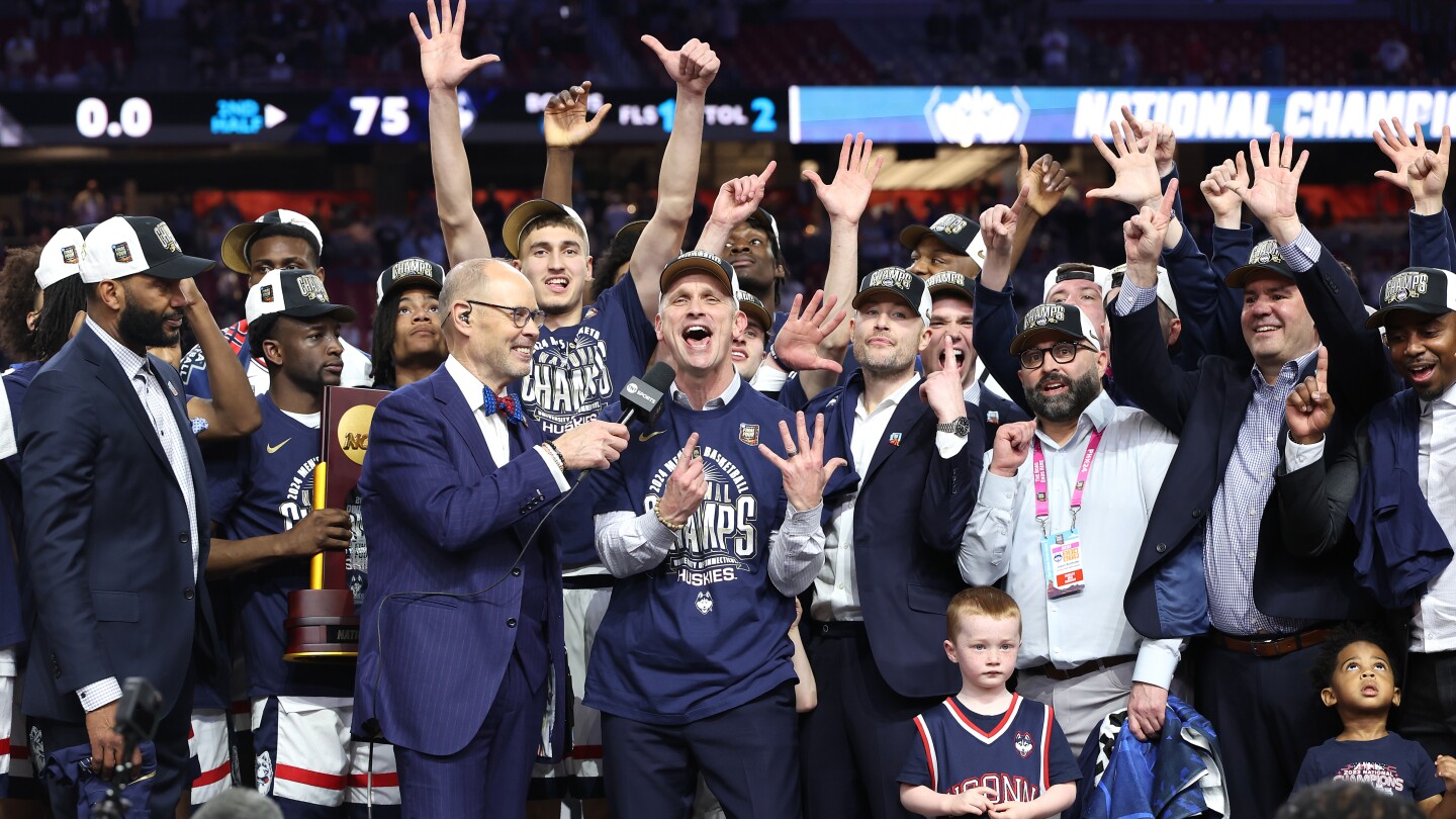 And the UCONN Huskies defend the national championship. They defeat the Purdue Boilermakers 75-60.