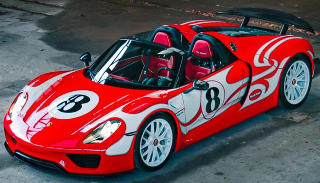 As one of just three 918 Spyders to feature the “Psychdelic Design” livery, it is the only car to be finished in white over Paint-to-Sample Rosso Corsa. Porsche has always been known for its eye catching liveries and color schemes, and none is more head-turning than this “hippy” color scheme. In addition to the psychedelic paint job, the exclusivity of the car is what sets it apart from others. With just 918 samples built of the 918 Spyder model, this car, numbered 680, was delivered in January 2016. While most 918s received a vinyl wrap under the Weissach-package, this particular one was painted. The color customization which saw the white-painted magnesium Weissach wheels along with silver brake calipers, No. 8 racing nomenclature on the doors and hood and even a discreet Martini Racing badges on the lower rear fenders causes a rise by onlookers.