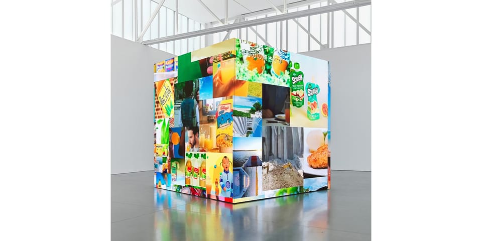 The 12-foot cube displays fragmentary images and clips sourced from international television commercials as early as the 1950s to the present day. In particular, Fischer utilized the latest advancements in AI to deconstruct individual shots, which are subsequently grouped according to color and theme — resulting in mesmerizing telecasts that probe into the power broadcasting ads have in swaying human consciousness.